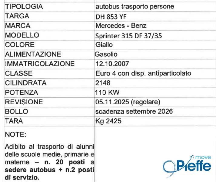MERCEDES-BENZ SPRINTER 315 DF 37/35 SCHOOL BUS, YEAR 2007